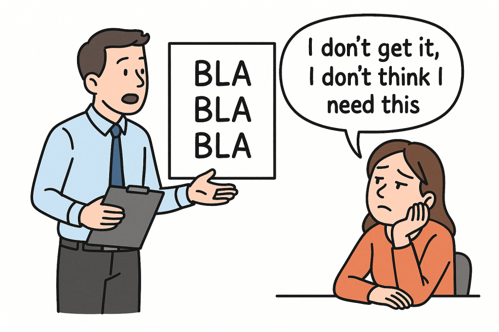 Teman saya berbicara teknis, mengakar dan mendalam. Memang benar, tetapi tidak nyambung dengan sudut pandang bos saya (yang dalam hal ini bisa dianalogikan sebagai target pendengar pesannya).